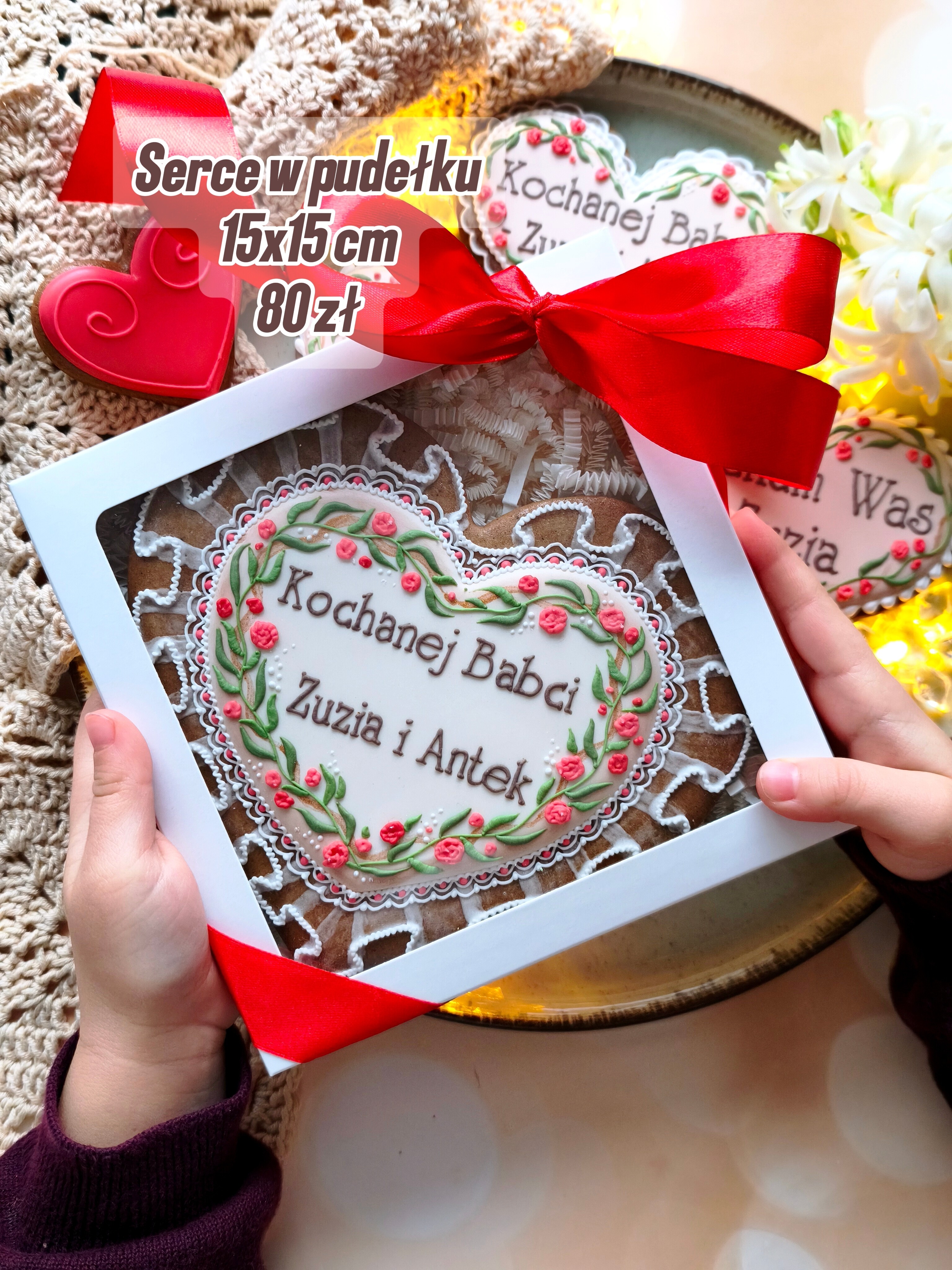 Cena serca w pudełku dla Chrzestnej, widoczne w galerii to 60 zł. Wielkość pudełka 15x15 cm.